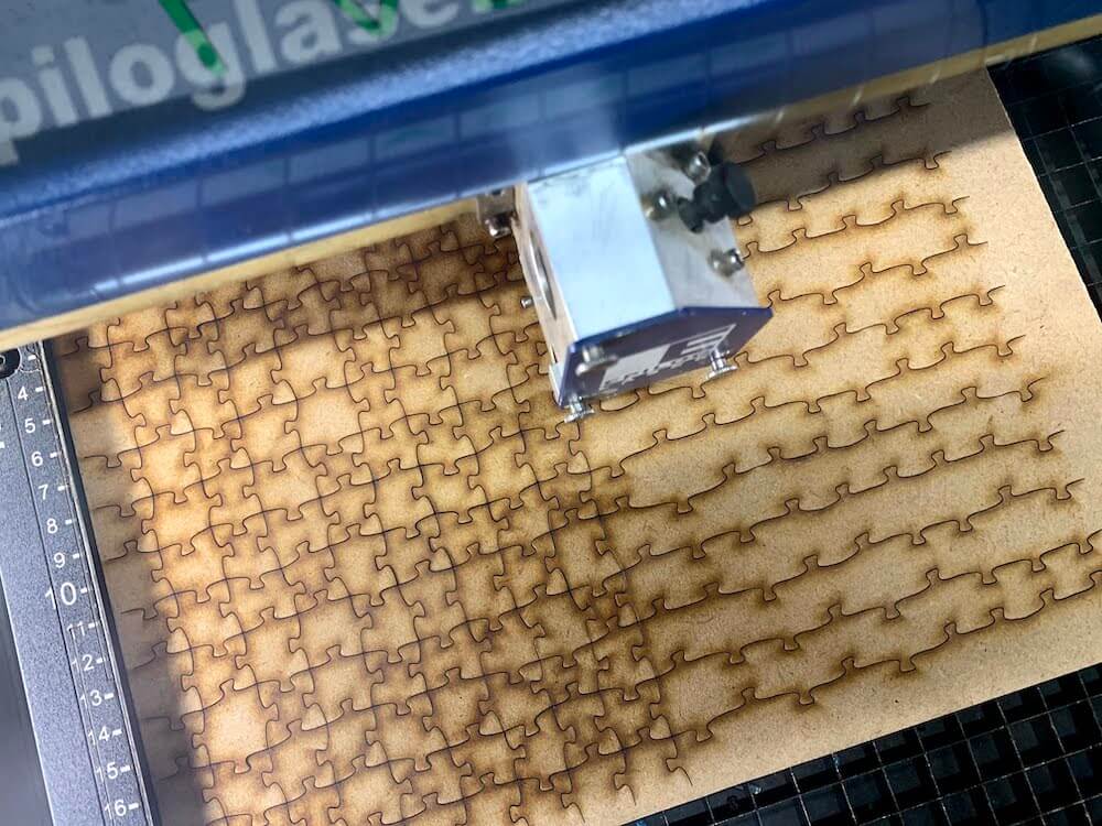 Long story short, my paths were in a pretty random order, so the cutting time estimate on the machine for a medium sized puzzle was 30min. This wasn't feasible with the way the machine is rented out. So I decided to go back and optimize the path generation to somehow group long chains of consecutive sub-paths together.